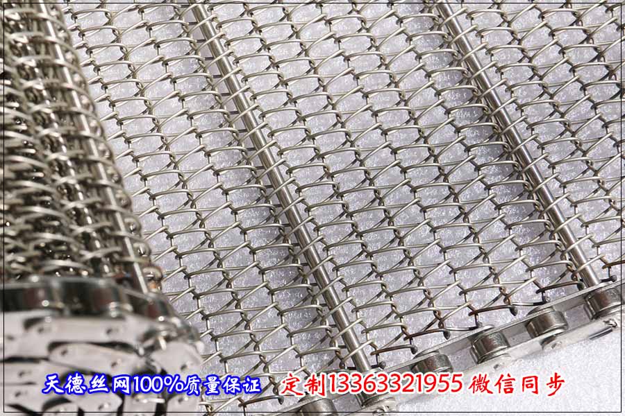 其中這臺鋼絲編織網帶輸送機的相關規格是這樣的:應客戶的需要網帶輸送機的總寬度為500毫米,總高度為500毫米,也就是半米高的高度,長度為7米,輸送為平面輸送。由于輸送的是魚丸,我們采用鋼絲編織型的不銹鋼輸送帶比較合適,此形式的網帶成本較低,使用時間長。魚丸速凍輸送網帶的總寬為400毫米,輸送帶的寬度一定要小于輸送機的總寬度,輸送帶的總長度為14米,因為輸送機的長度為7米,不銹鋼輸送帶需要轉一圈的,輸送網帶的絲徑為1.2毫米,編織成型的輸送帶的孔為15*20毫米,只要魚丸不會漏下去就可以,根據輸送的需要網帶的兩側安裝高5公分的擋板,擋板的厚度為1.2毫米,作用是為了防止魚丸在輸送的過程中會漏下去。