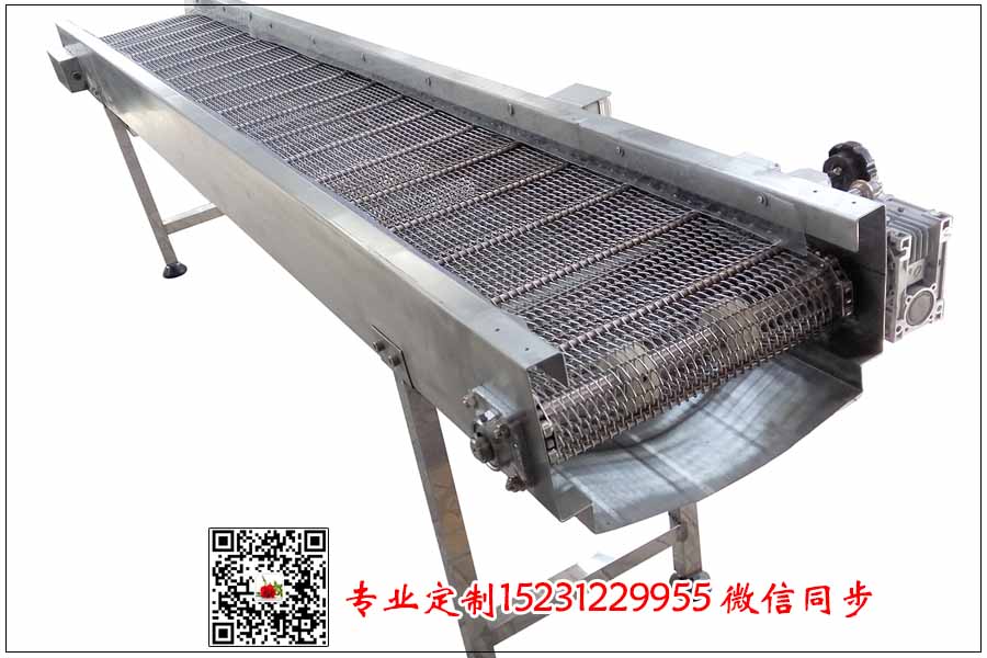 網帶輸送機是輸送行業必不可少的輸送設備,昨天桂林的袁總來電咨詢不銹鋼網帶輸送機,用來輸送小食品,我公司根據袁總提供的相關資料定制具體數據如下:規定在食品行業我們采用不銹鋼304材質,機器的總寬在700毫米,總長度在5米,要求輸送機不帶腿,鏈條不銹鋼網帶 鏈節距為31.75毫米,不銹鋼桿直徑為8毫米,鏈桿之間的距離為200毫米,不銹鋼絲直徑為1.5毫米,網帶節距為30毫米,網帶螺距為20毫米, 配帶0.75千瓦電機,帶減速機和變頻器,要求速度比為1:50。控制開關要求正反均可調節。 網帶輸送機的用途特別廣泛,不銹鋼網帶是輸送機中重要的配件,可以根據輸送產品的形狀大小加工成不同規格結構的網帶。 不銹鋼輸送機整機堅固耐用,不愛生銹,使用壽命長,已經廣泛的應用在解凍流水線輸送設備中。