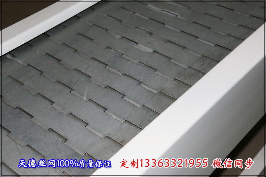 河北天德絲網制品有限公司生產銷售合頁式不銹鋼鏈板輸送機:13363321955 http://www.apwangdai.com/